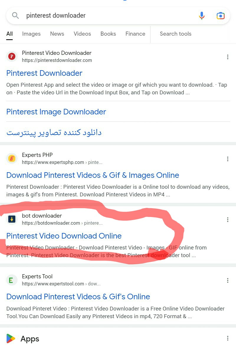 حالا سرچ کن Pinterest downloader