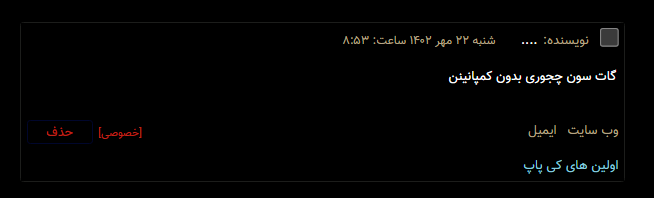 و اما بخش نظر خصوصی اینطوریه که من فقط میتونم کامنت شما رو ببینم و دیگه نمیتونم مثل کامنت بقیه تاییدش کنم تا توی وب نمایش داده بشه