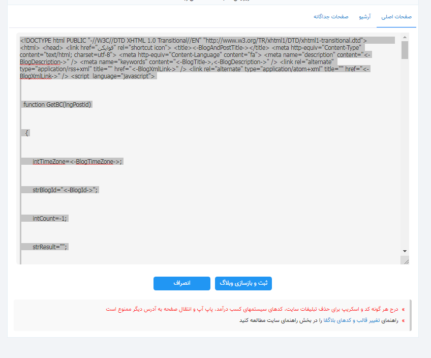در اخر که کد جدید رو گذاشتید بزنید ثبت و بازسازی وبلاگ و تمام